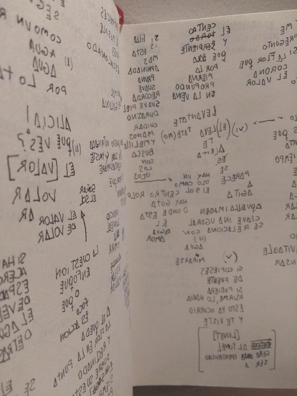 This practice has somehow begun to be an action that I use frequently to open up subjects that become too heavy or encrypted to me for understanding. This also allows me to cut down words, recombine, and order not just words but also texts and, as a result, meaning. Also feeling there is a connection with a sort of conjure within this very act of writing-scribbling.