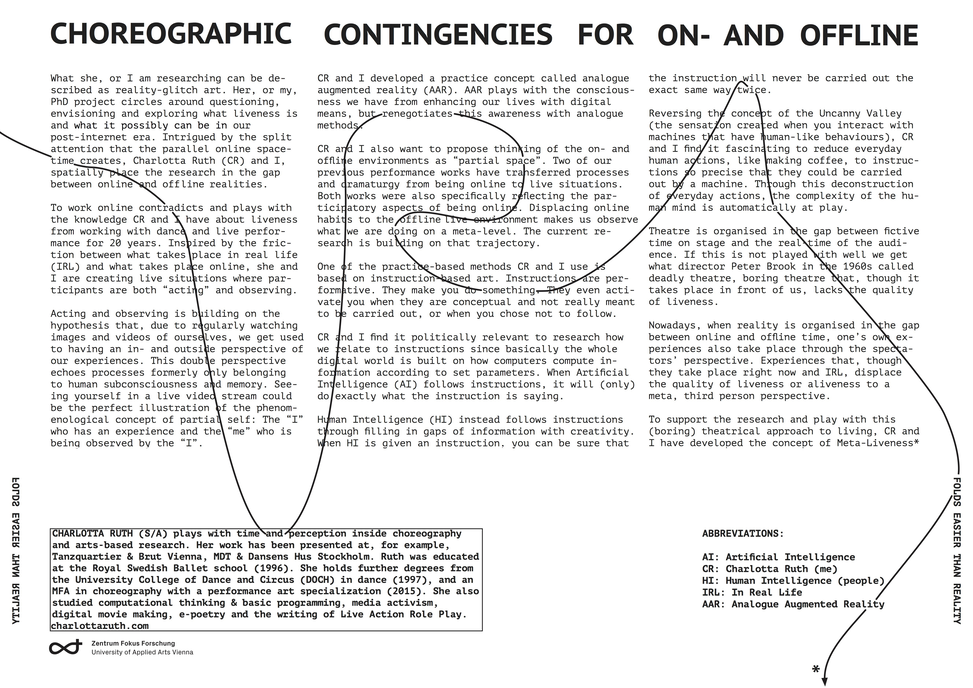 3. Excerpt Poster-publication Choreographic Contingencies for On- and Offline PhD in Arts, Art Research Envelope 2, Zentrum Fokus Forschung die Angewandte 2018.