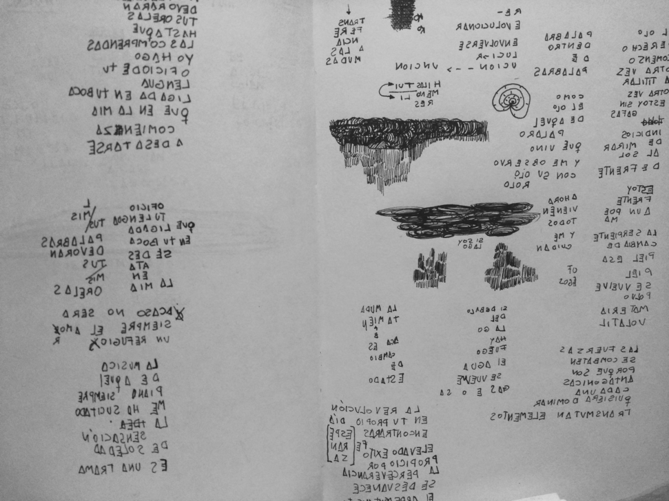 Recently, I have been using automatic backward writing in order to trigger creative processes and reflections, finding myself returning once and again to my notebooks and the action of scribbling. Greatly appreciating the outcome in terms of graphism as in a drawing state, but also in the terms of the action involved. As construction of a routine that has, on many occasions, deepened reflections or understanding on topics I would want to dig deep into this practice as it seems to have a direct relation to some sort of meditative practice.