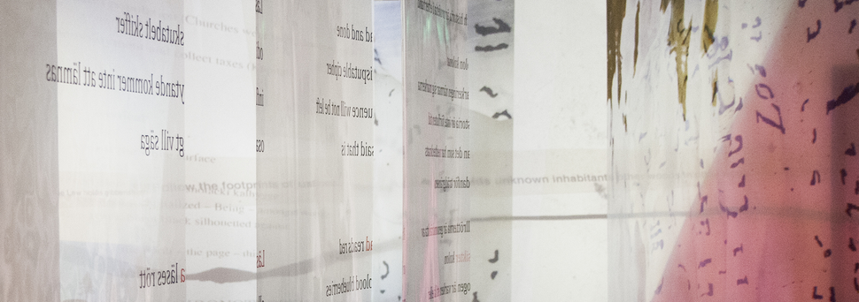 I am an artist, writer, and researcher, carrying an MFA from the field of visual art and a PhD from the field of literary composition. In my artistic research I engage with language based practices to inquire into issues concerning language, history, power, and performativity. I specifically investigate into the materiality and motion of language in relation to areas where the same might be perceived to have stiffened, or settled. My PhD project Howe Across Reading: Performing the Past is an inquiry into aspects of the histories and languages of New England, north eastern USA, and Västerbotten in the north of Sweden, with and through writings of poet and literary scholar Susan Howe. Through a translational (1) performance writing (2) practice a focal point in the research is indeed the un-settling of seemingly settled times, lands and texts. The notion of unsettling, which is activated in the work, being a pun on anxiousness/worry and an undoing of a settler-colonial settling, further carries specifically textual associations, also referring to language in print, the set text. Whereas the practices engaged with in the research differ, they share an important aspect that has to do with repetition, with sameness and inevitable difference. In translation as in performance writing’s re-telling and re-mediating, the text “comes again” as something else.