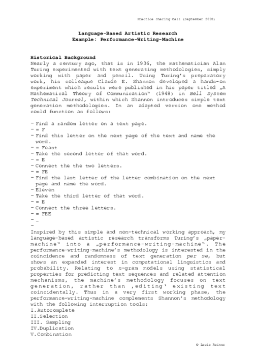 Conceived and co-organised by Emma Cocker, Alexander Damianisch, Cordula Daus and Lena Séraphin, this Society of Artistic Research Special Interest Group (SAR SIG) provides contexts for coming together via the exchange of language-based research. The intent is to support developments in the field of expanded language-based practices by inviting attention, time and space for enabling understanding of/and via these practices anew.