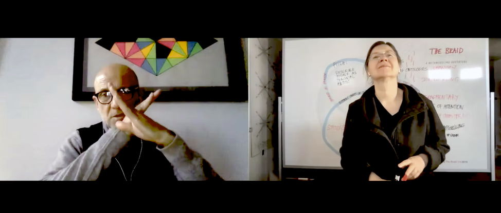 The inquiry focuses on the relationship of language based practices and the construction, withholding and disturbance of meaning making, as it proceeds through personal artistic explorations - articulating solitudes. Thus far this is being explored through the practice of considering language as something becoming image and vice versa in and through Dutton’s artistic practice and through the application of Mers’ Diagrammatic Instruments which are the construct at the center, and quite literally the 'middle term' of her artistic practice of Performative Diagrammatics - articulating solitudes together. What develops, amongst other things, is an ongoing dialogue around the nature of intention, interpretation, when to speak and when to be silent, and the work of art as finding its form by perpetually performing itself. Discourses that intersect with our inquiry are Aesthetics and Epistemology, Cognitive Linguistics, Philosophy of Language, Performance Philosophy, and New Materialist Philosophy, along with ecological inquiries across social justice, gender and organization studies. We are interested in curating, facilitation, dramaturgy and performance. Others are welcome and the focus of the group is flexible and expansive. Please email us, including ‘Articulating Solitudes’ in the subject line.