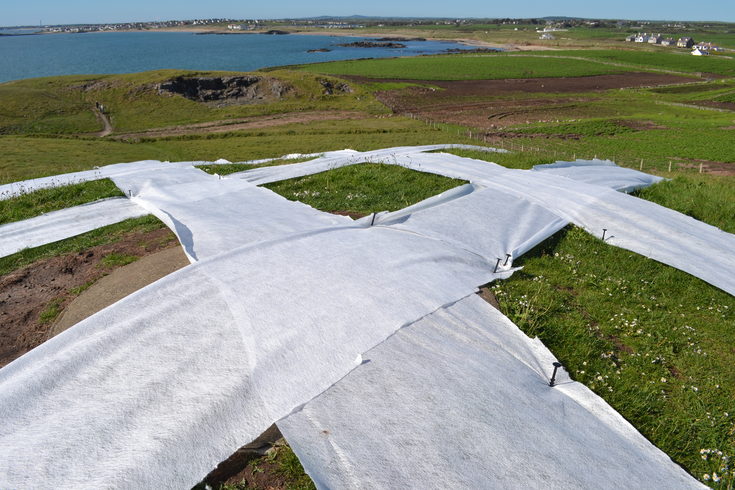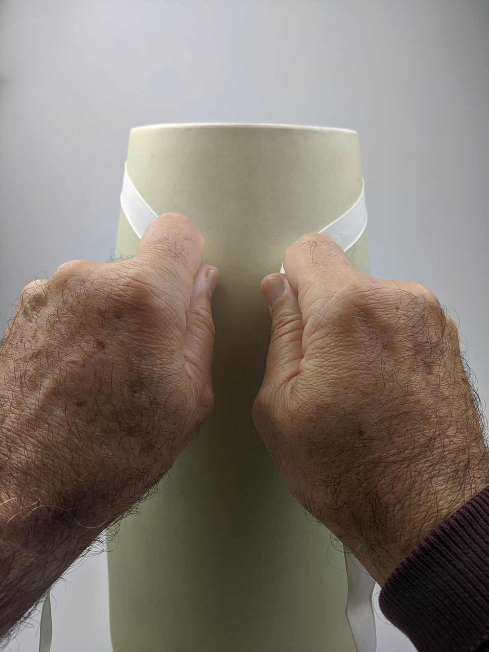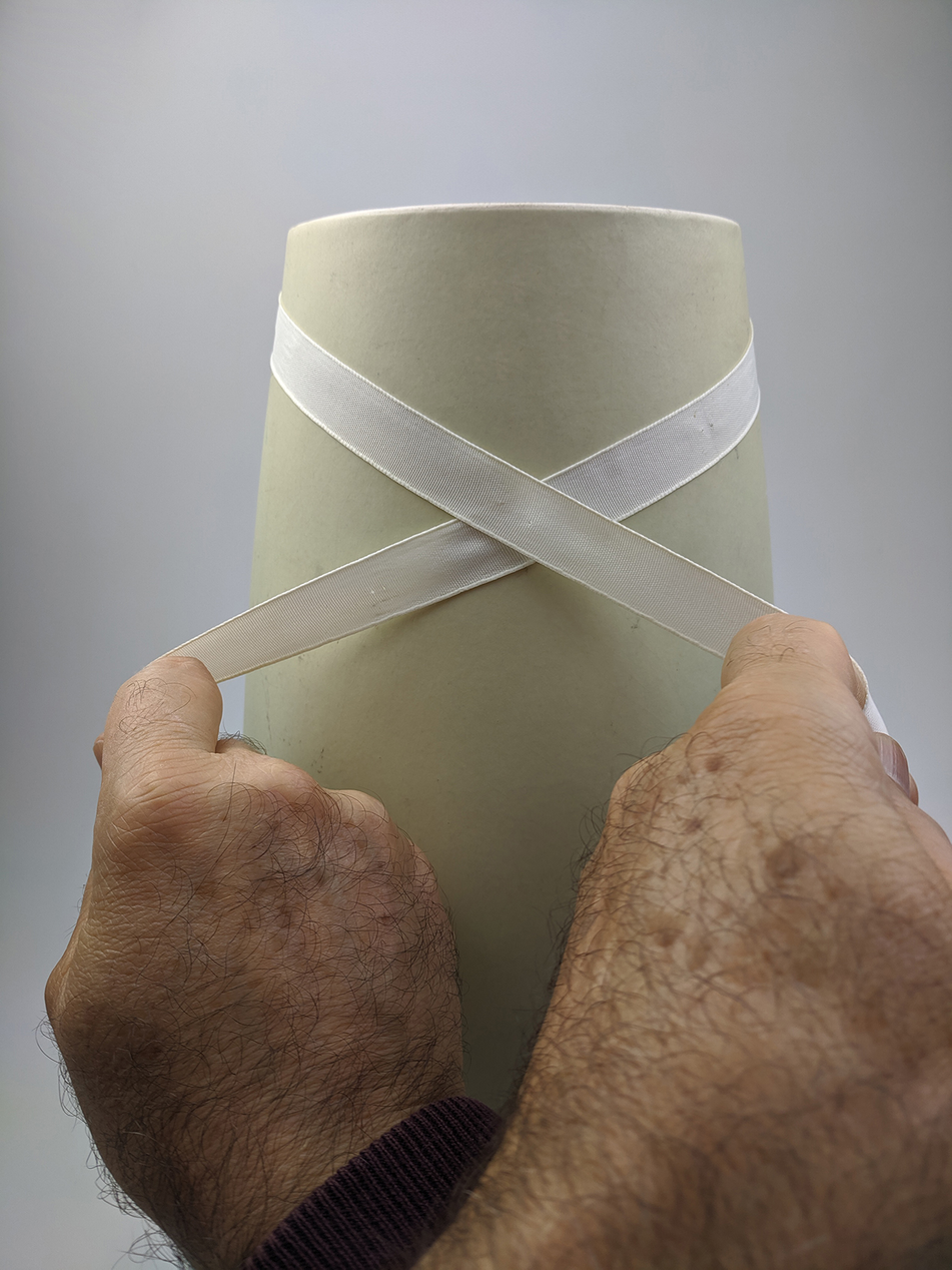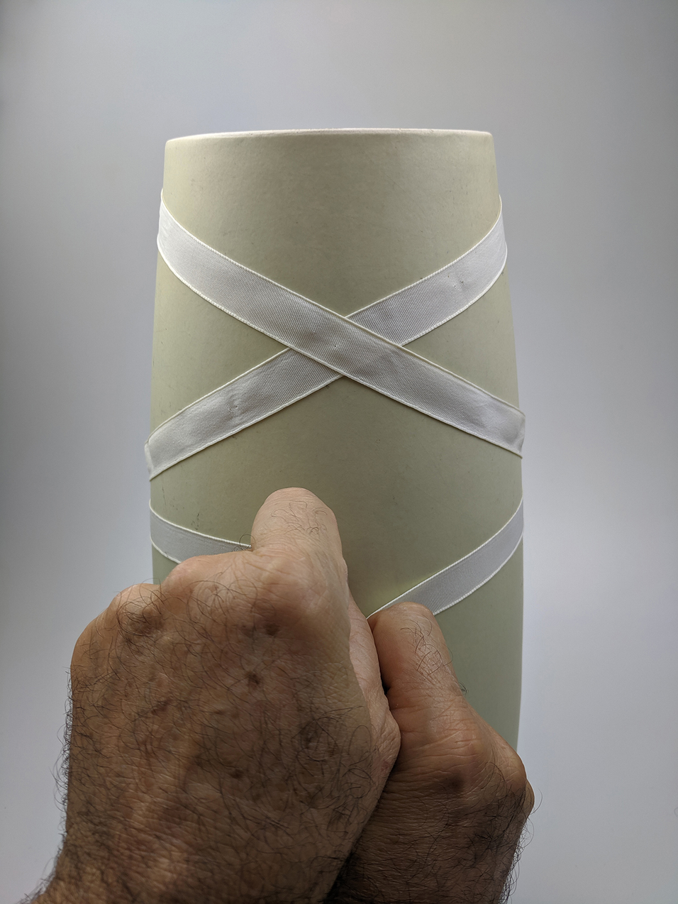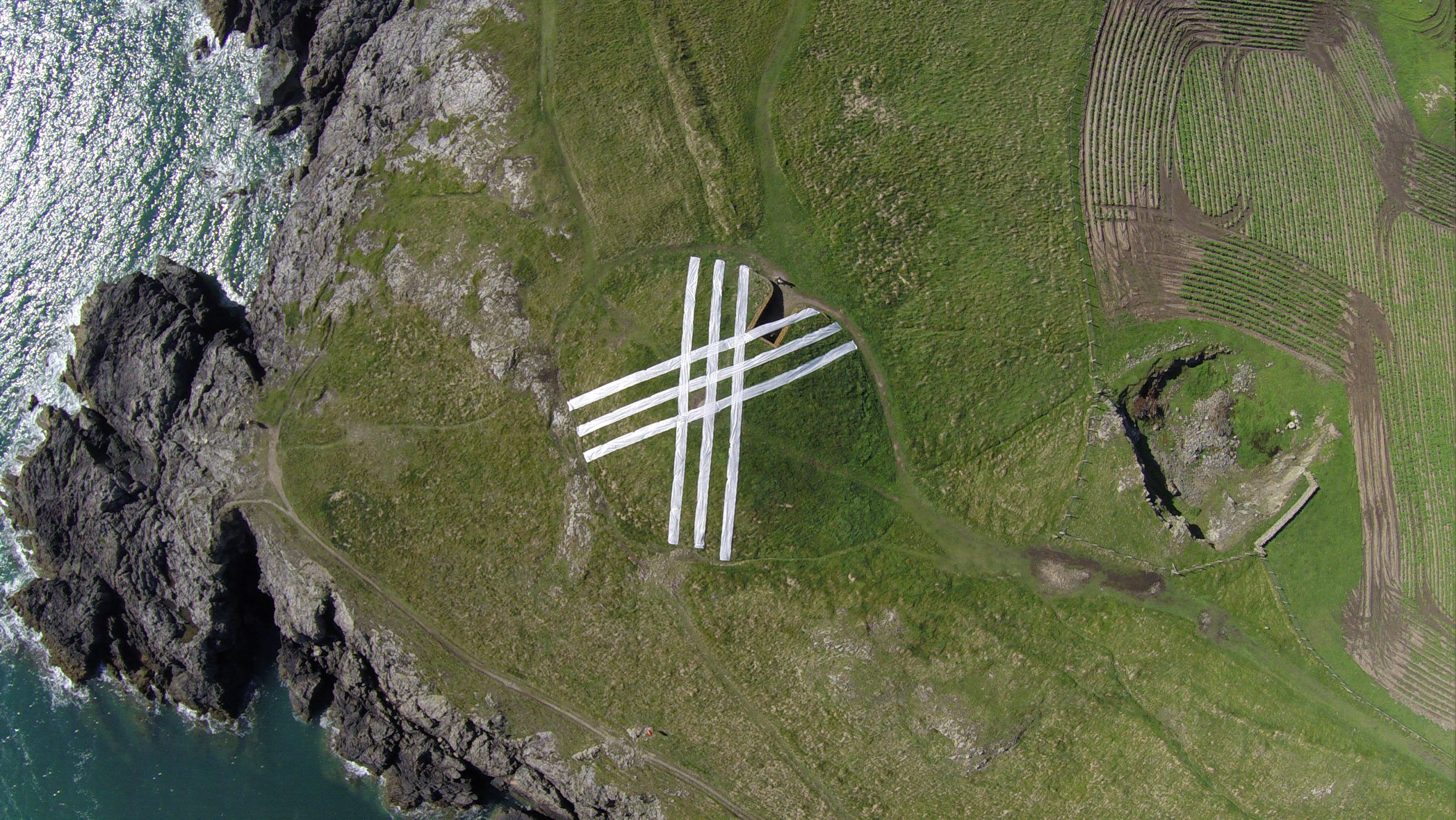“[An] example of how bodily memory resulting from rhythmic activity shapes imagery is that of the engraved stone inside the Late Neolithic passage of Barclodiad y Gawres in Wales, Anglesey Island (see Nash & Stanford 2011; Nash 2008). The tomb, dated to about 3500 BCE, is the interior of a cairn positioned on a high cliff. In 2014, within the GestART project, coordinated by Professor George Nash, I had the opportunity to create a contemporary art work that would present the monument to the public. While searching for a representative image to achieve this, I identified on the engraved standing stone located to the right of the entrance to the funeral hall, a lozenge pattern similar to the one on the Cucuteni-Tripolye figurines. (…) I repeated these gestures on the stone, using textile bands and strings, in order to embody the ergonomics and the rhythm of the plaiting described by the engraving. (…)” [Figs. 4-6]