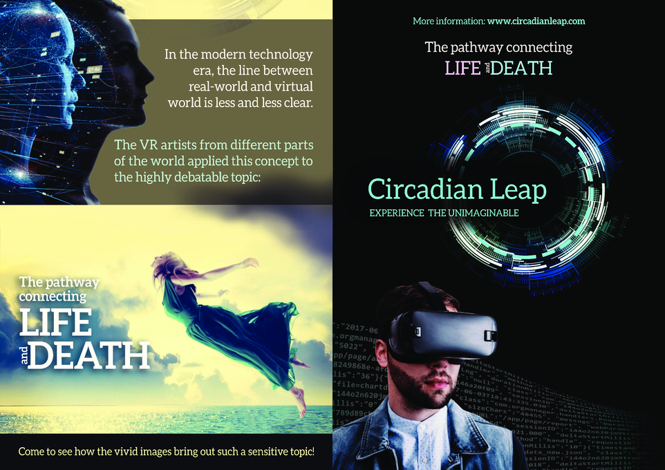 Self-made leaflet used in the film as the VR exhibition of a topic about reality and death. The Implication of the film content and my research pathway.