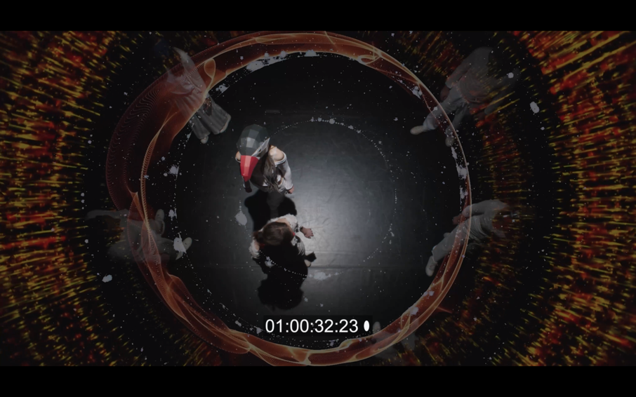 The following layered-circle structure appears on and off during the theatre play. There is different circle zones implying different perspectives of the characters. When the characters (Emily, Ibis, and the rest) swap among the circles, it means the perspective shifting.