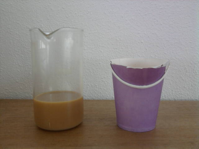 Unfamiliar: filling mini containers with juice as transport system (polymormpic action)