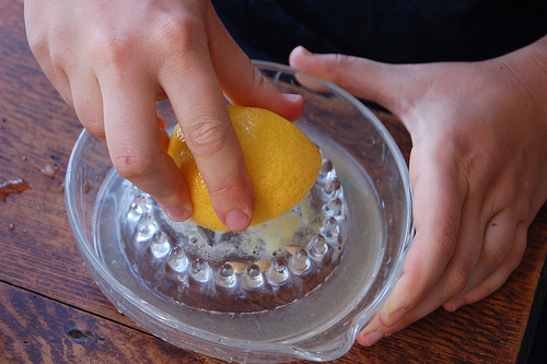 Unfamiliar: plop sound trying to 'squeeze' the lemon into a jar by a 'screw' principle (STK)