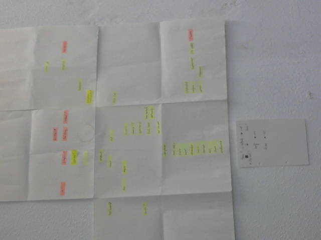 I think the origin of the initial idea/starting point can be explained best by the term 'field of interest'. I think it is like searching with a string of people for traces within a certain enclosed area. The mind will go along all the points (coordinates) in this coordinate system continually. Although, as described above, this might seem calculable, the axes should be imagined flexible, hybrid, and fluid, transparent and multi-dimensional. This metaphorical elaboration is just to 'sketch a curve'[1] of how a thought can 'run' and come into being. This description is quite comparable to a description composer and director Julian Klein has used, but then as mode of aesthetic experience. He describes this perceptual mode as that of 'sensible interfering frames’.[2]