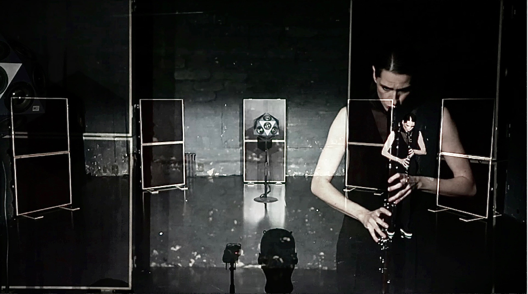 “Semaphor” is a spatial sound-composition for two pioneering instruments, which are explored both practically and theoretically by the artists Susanne Fröhlich and Gerriet K. Sharma: Helder Tenor recorder and the Icosahedral loudspeaker (IKO). If one understands both instruments as sound projectors, sound textures in sculpturally entangled states, spatially demarcated sound layers and scenographies can be composed and perceived in a way, scarcely producible in this ensemble constellation until now. The piece attempts to discover the shared perceptual spectrum of both instruments in dialogue and thus to expand the aesthetic possibilities of spatial composition in the present.