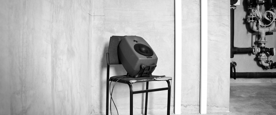 With the help of the five-meter high subwoofer tower, the window fronts and floor panels could be set into vibration. Thus, in the audible range, the entire building could be used as a resonance space in terms of building-sound composition. The floor chambers were understood as independent instruments. Equipped with loudspeakers, filtered through the concrete floor slabs, the sounds could only pass through the floor hatches into the building. Like slots in wind instruments, the edges of the hatches formed the columns of sound, some of them rising with high energy, which were then divided into modulated frequency bands by the sudden reverberation, in order to be absorbed by the total volume moments later. In the course of the compositional process, there are repeated interruptions, because heavy rainfall on the metal roof makes concentrated listening almost impossible.