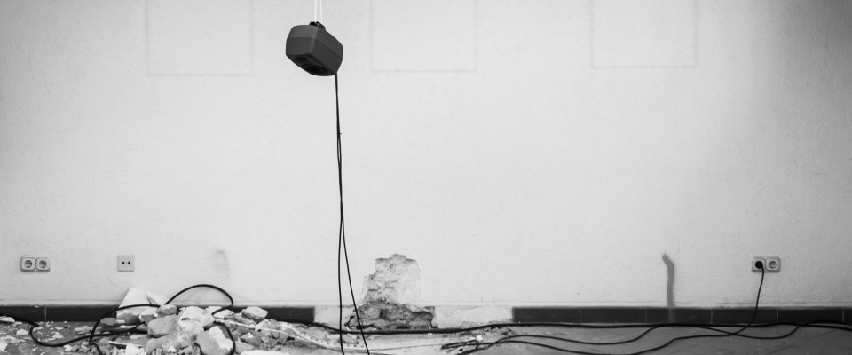 These leaps and constant relocations are supported by the arrangement of the loudspeakers and the spatial sound arrangements. Loudspeakers are partly hidden, partly clearly visible, sometimes both in one room - constantly creating irregular questions, restlessness in a state of silence, and trust in the availability of a moment without disposition.