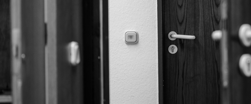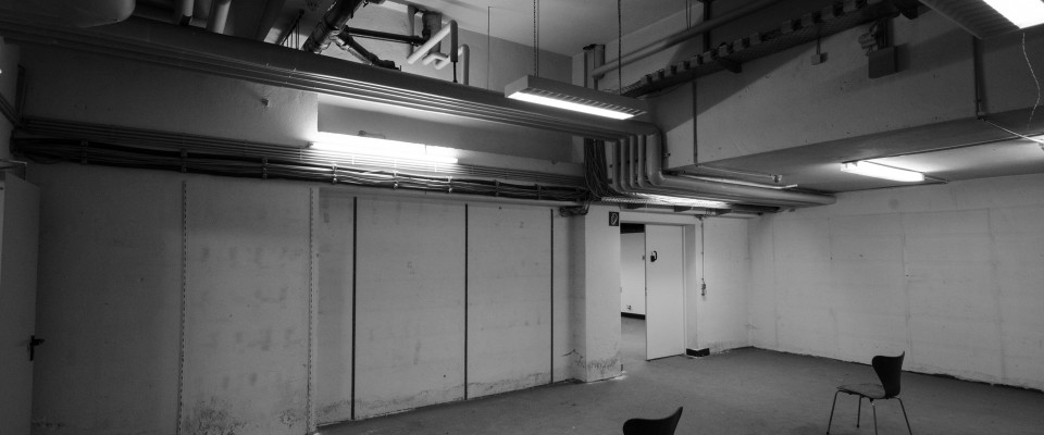 These passages can be used like filters in an analog sound generation chain and contribute significantly to the composition. Whether a room is illuminated and how strongly it is illuminated by the lamps installed there also plays an important role in how the scene is perceived when entering and also after a while of getting used to it. Opened or semi-closed blinds allow for an incidence of light which can support the sound. Lowered shutters visually isolate the room, usually also acoustically from the outside world. These found facilities are factors that became more and more important and concrete components of the composition possibilities on site during the time of the work in and with the buildings. The ground floor, the basement and the cellar are each equipped with their own computer-controlled multi-channel loudspeaker chains, which were installed in the respective room constellations.