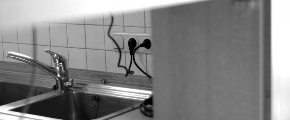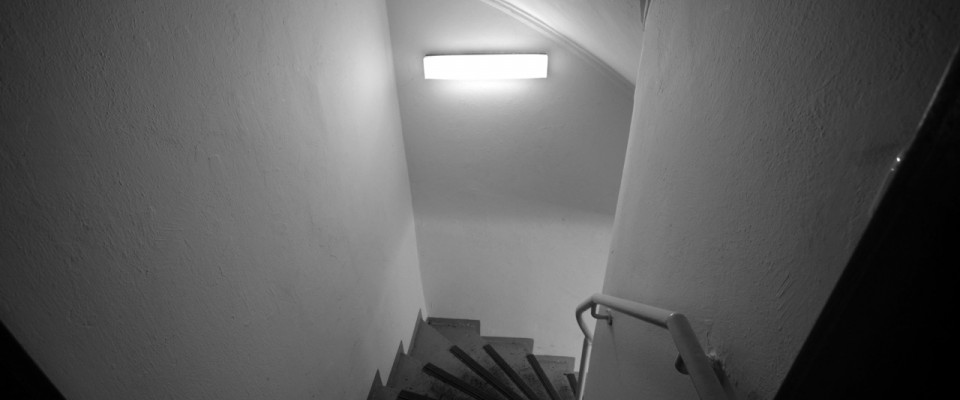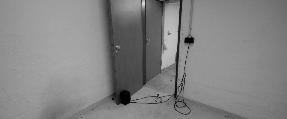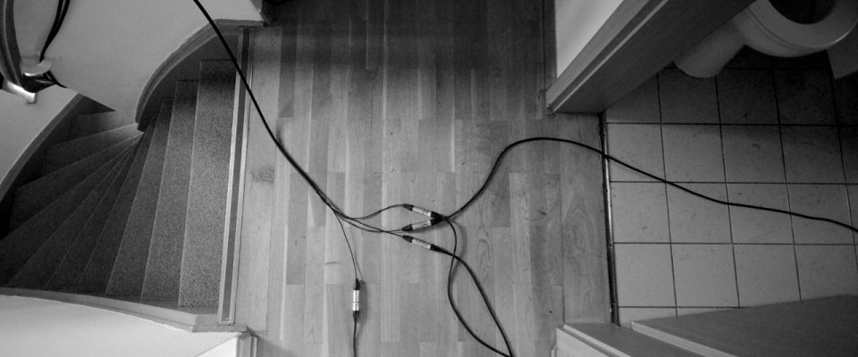 For example, the speakers in the basement, especially the one in the washbasin, create vibrations with low frequencies around 80 Hertz in parts of the foundation that are transferred to the wood in the stairwell and the coatroom. The vibrations make sounds and can be intensified; its rhythm can be centrally controlled. I record the “empty” rooms, playback the signals, and create feedback, in order to stir up the room and provoke a reaction, which I also record as material.