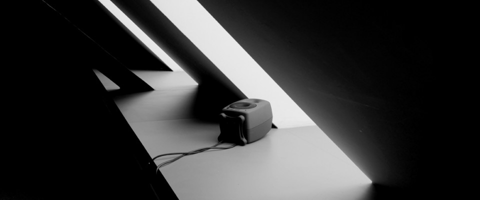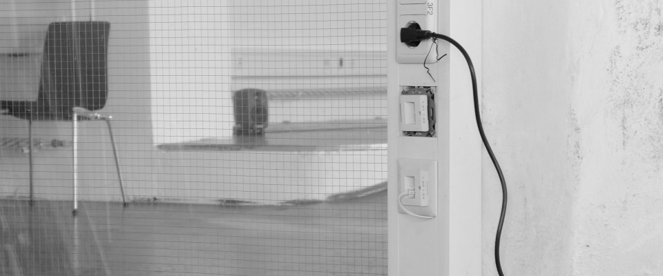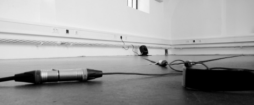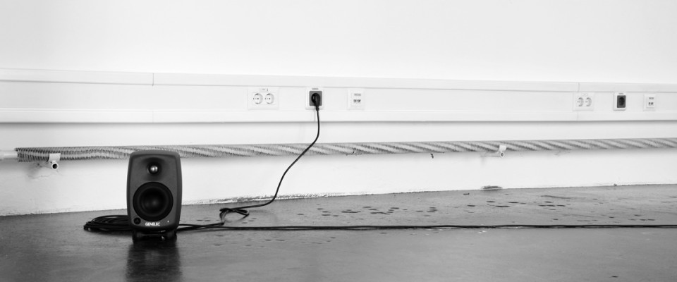 The building is a non-place for which I created a six-part spatial sound composition with 32 loudspeakers mounted at distinct spots, playing with different and moving spatial textures in regard to the acoustics of the building and the environmental sounds. This segmentation gives the listeners’ ear an orientation as they flow through the building hinting a familiarity to the unknown and the space itself. Furthermore, swelling and decaying bass structures are pumped from time to time into the area of the restrooms until the walls start to vibrate. These vibrations and rattling are used as percussive elements and physically placed in the middle of the sound composition. The sounds change as they move through the building depending on the filtering of the individual elements of each room. A sound occurs as a listener is passing by, then disappears into a course of continual repetition throughout the building’s spatial fabric, tracing a line through the space that gets thinner and thinner towards the end before becoming noting more than a memory only to come back again, get closer and leave again.