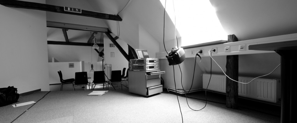 The building reacts completely different than the building in Wurzburg and test rooms. During the first spatial inquiry, I realize I will have to deal with different reverberation times on the first floor. The maze of rooms, connected by a number of doors, creates a dense fog of reflections. Some of the software based inquiry tools created over the past few months are swallowed up by the mixture of reverberations and outside noises and become barely audible due to the great distance between the source and the ear.