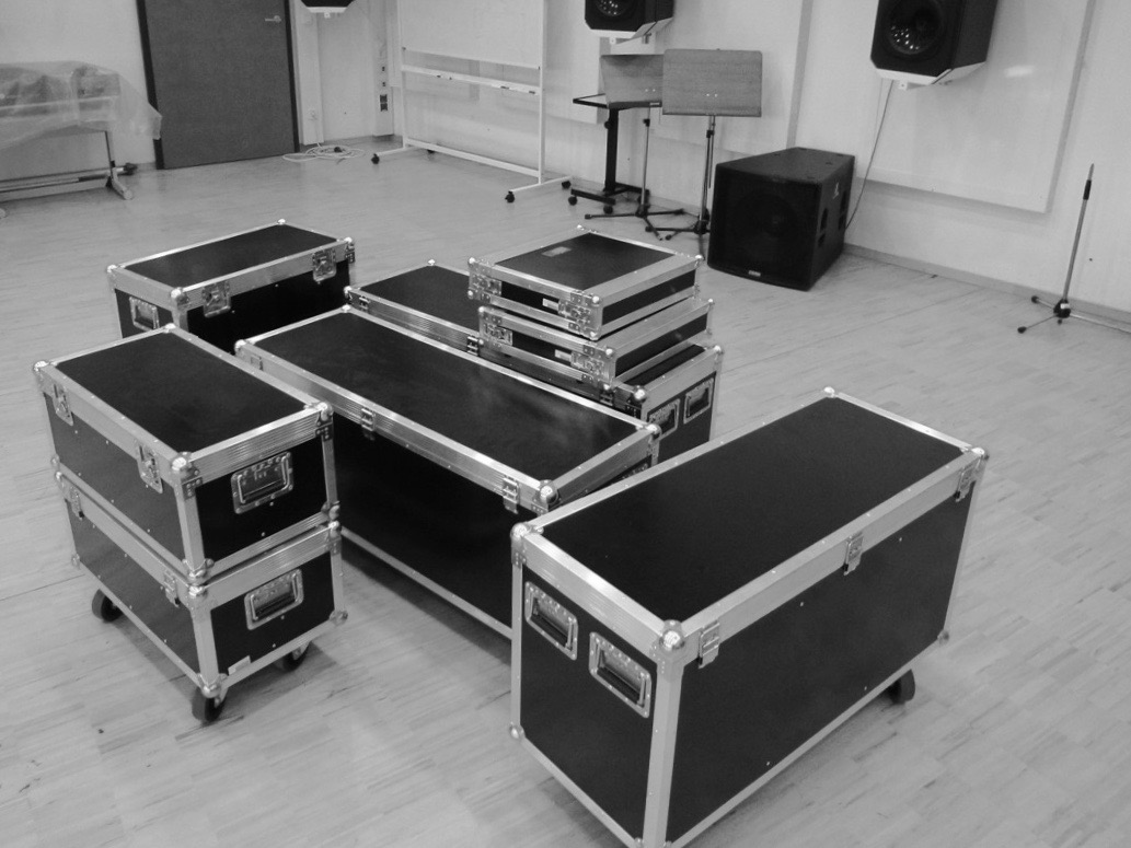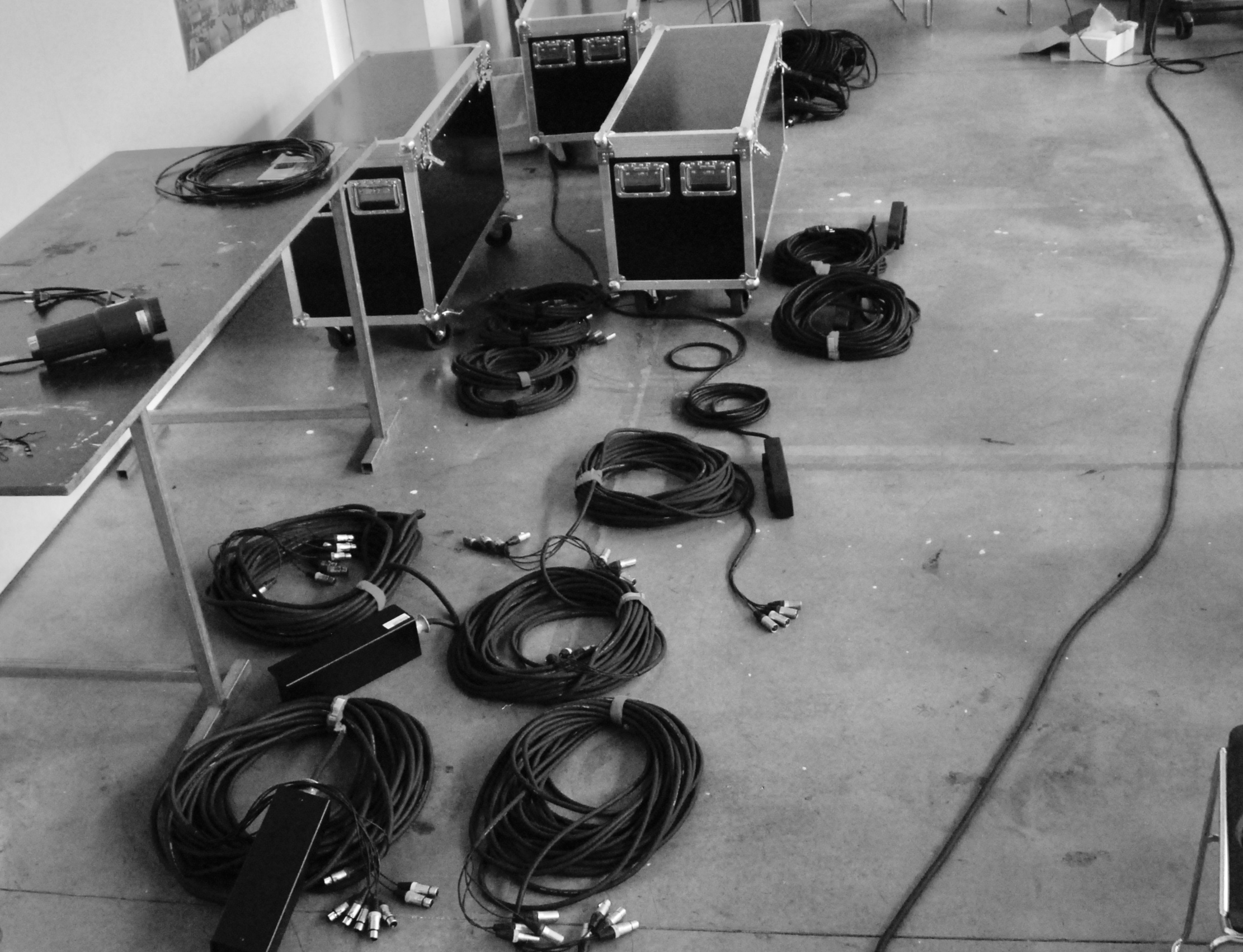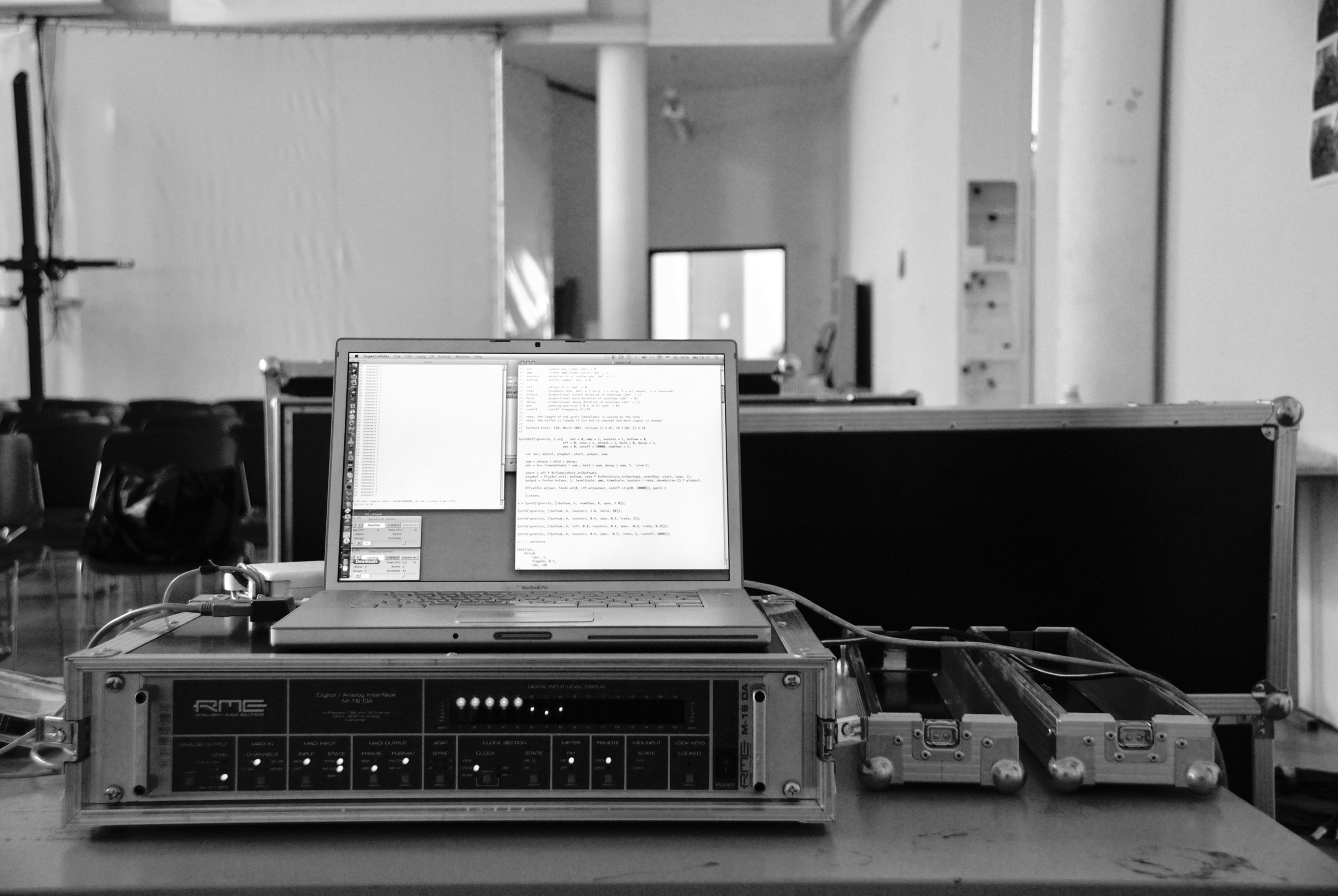 The hardware consists of 32 active speakers and cases, D/A converters, an audio interface, a laptop computer and all the cables and fixtures needed to easily disperse the speakers in any architectural or natural setting.