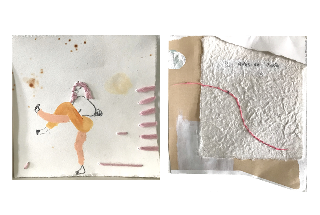 Aves De Paso, 2020, paint, wool, string, pencil, paint on paper, varied dimensions