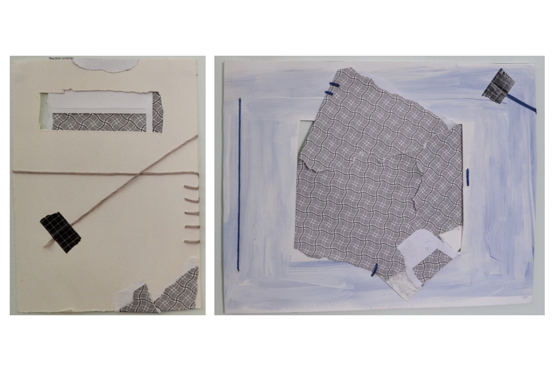 Collages A and B, 2020, string, tape, envelope, paper, paint, varied dimensions