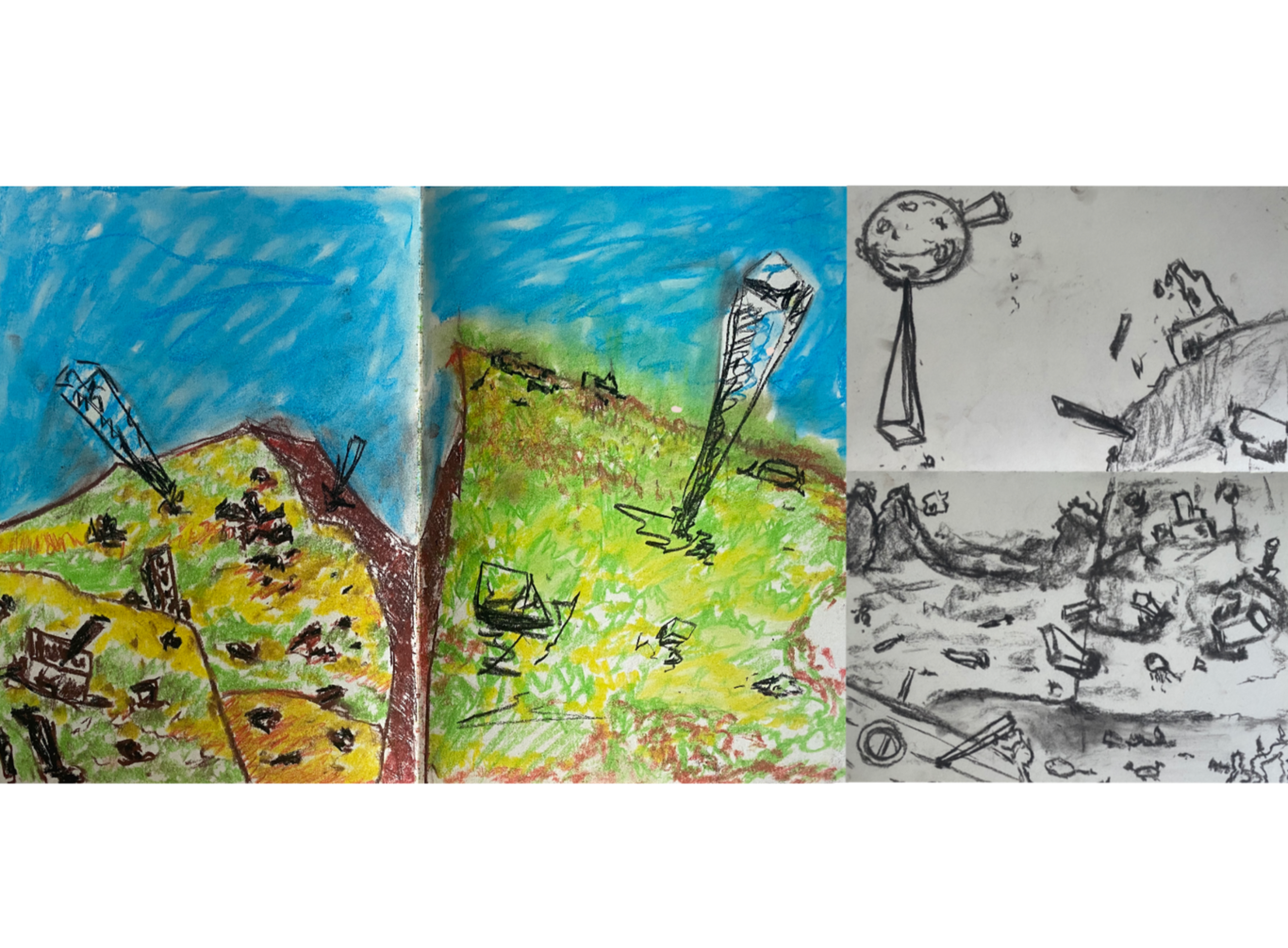 Curiosity and Hope, 2020, pen, soft pastels, paper collage, A2