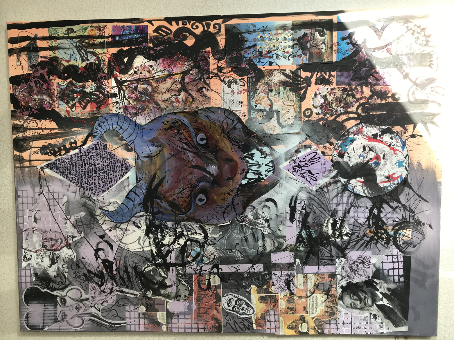 Mask, 2020, pen, paper collage, soft pastels, cardboard, 29,7 x 42 cm (A3)