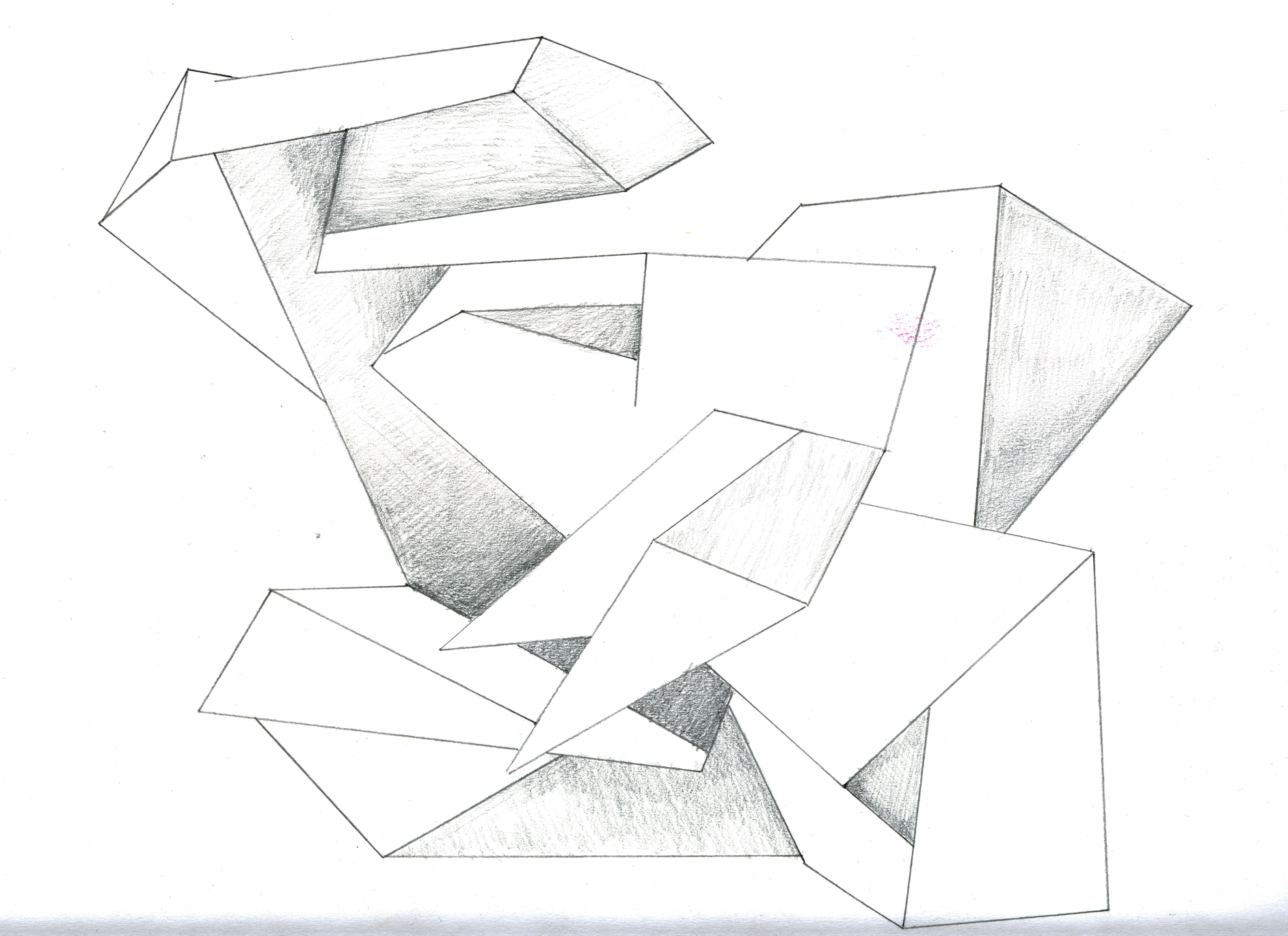 Study With Shaded Sides 1, 2020, pencil and paper, 14039  x 10200