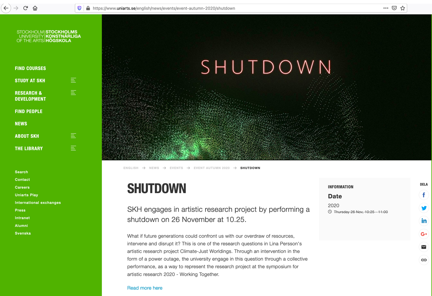 video presentation for the symposium on artistic research 2020–Working Together at the Swedish research council. The video is an actualisation of the artistic research project Climate-Just Worldings that stages a shortage of electricity at Stockholm University of the Arts.