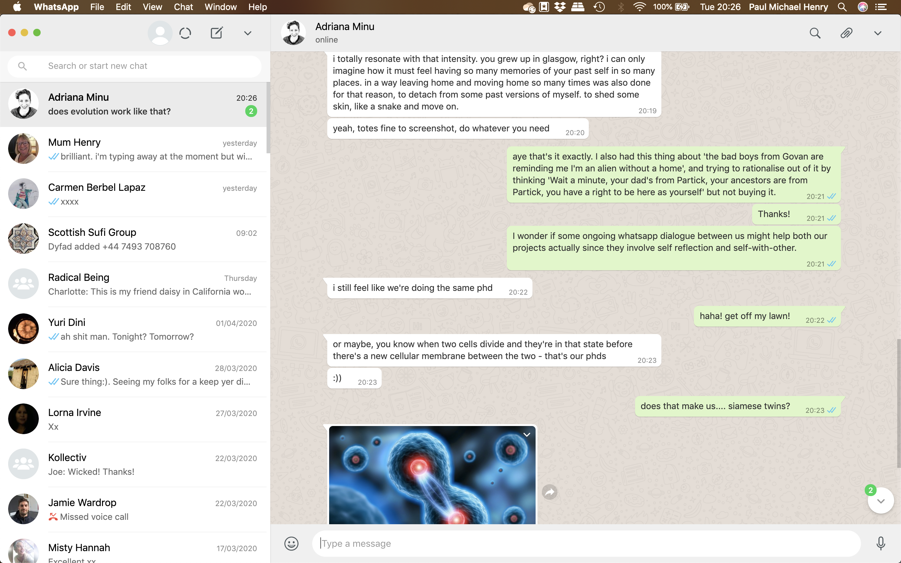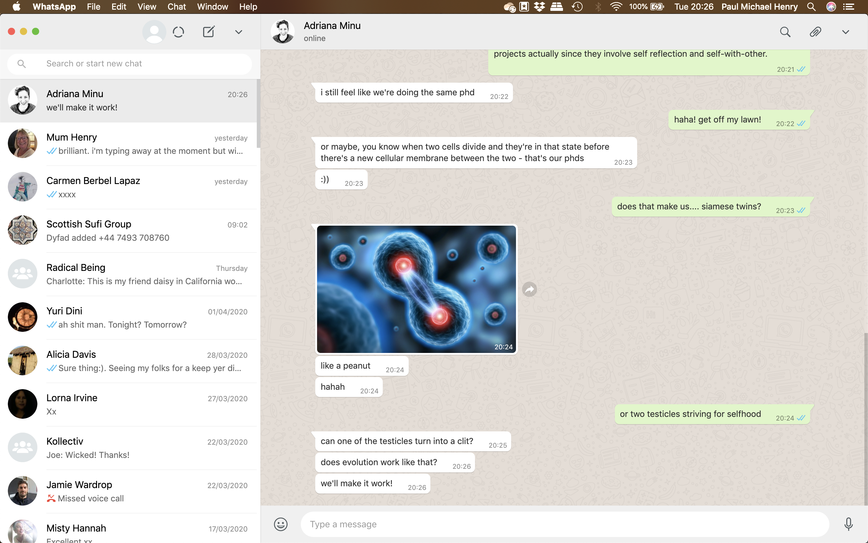 When I get home I make light of it on Whatsapp to my friend Adriana (fellow PhD student).
