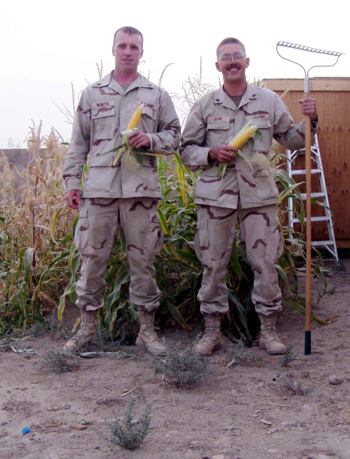 Facing uncertain supply lines in Iraq, Sergeants Wanzek and Quam decided to plant corn, carrots and beans. Using growing techniques learned from locals on growing food in a climate that gets as hot as 140 degrees, they had enough surplus to share beyond their troop. Article.