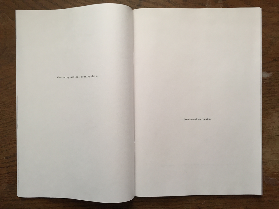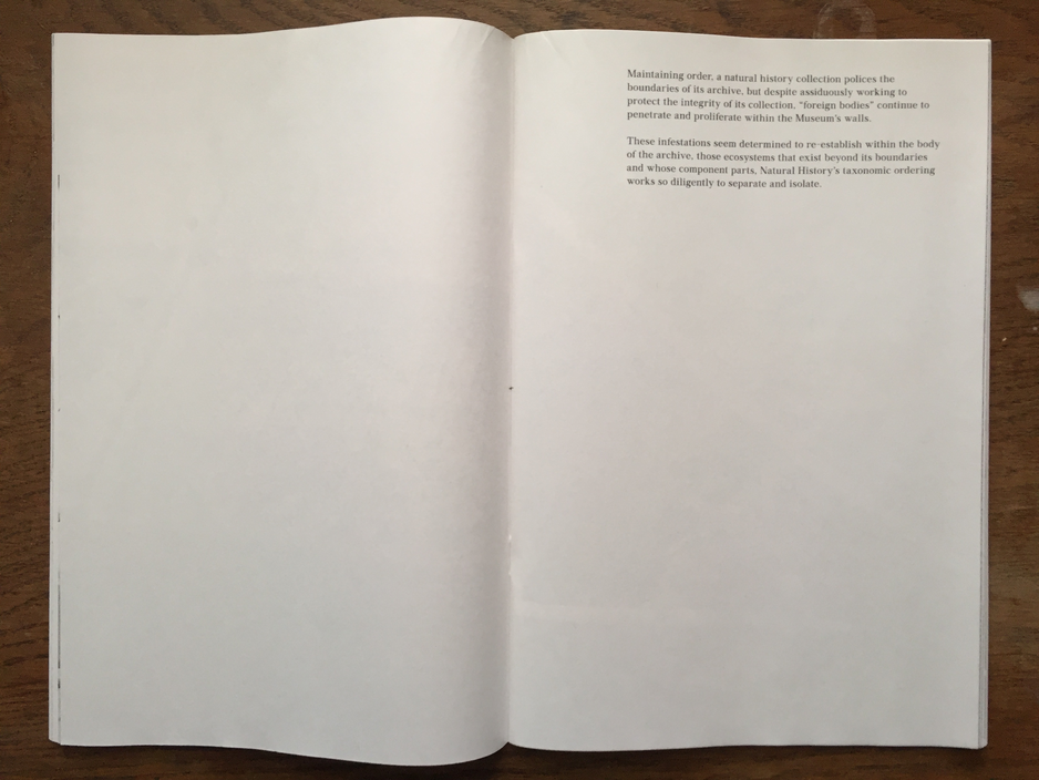 The thin paper of the book, recalls the delicacy of the organic materials which the museum tries to protect from the infestations which would, given the opportunity, devour them