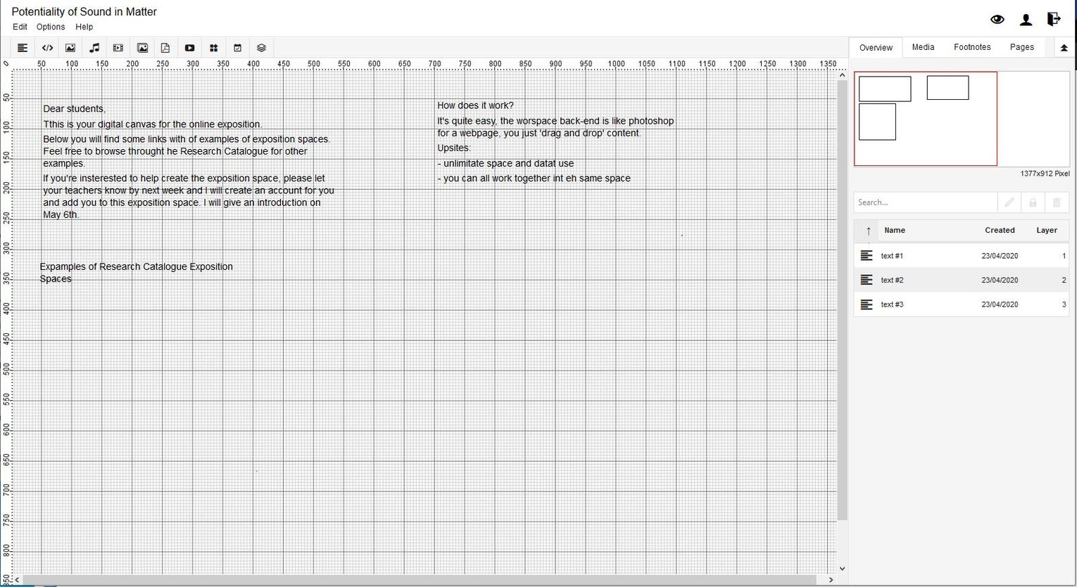 This is your digital canvas for your online Exposition on theResearch Catalogue .
