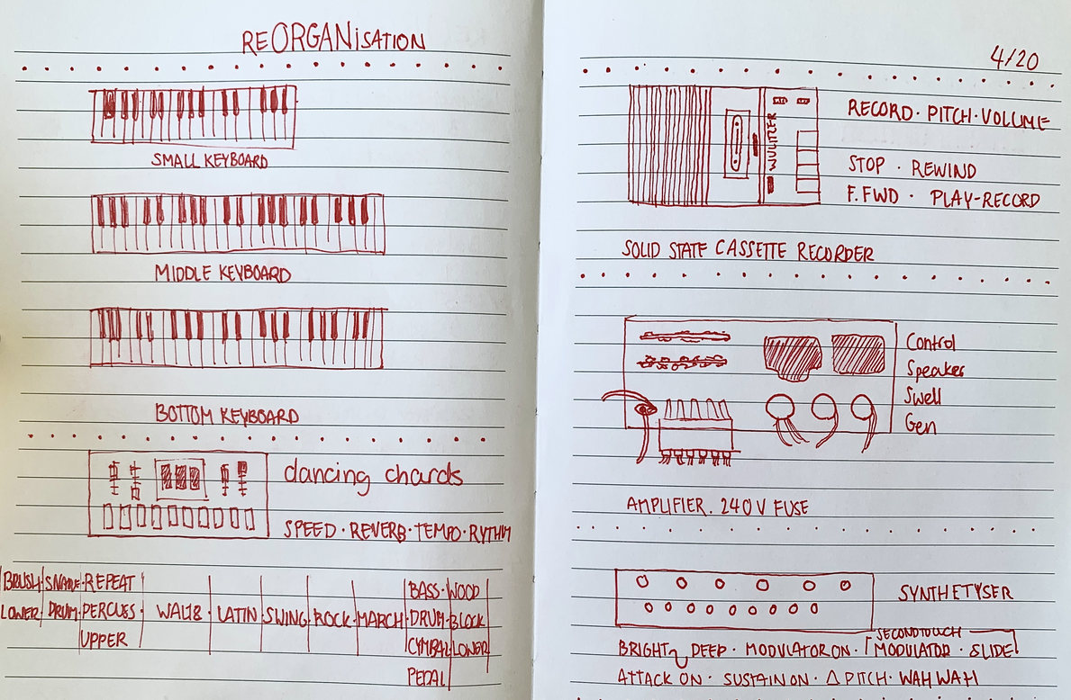 out of this performance is a collection of sounds and noises shifting from one