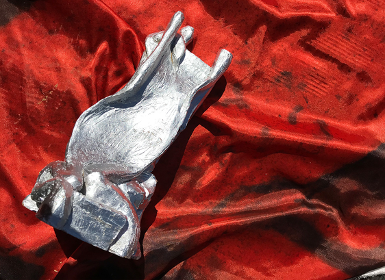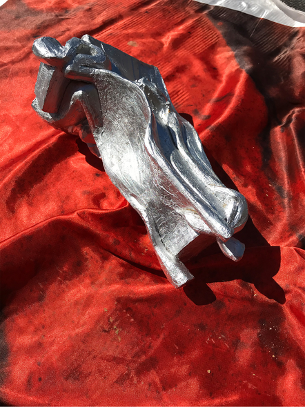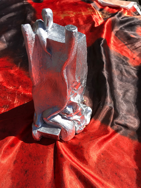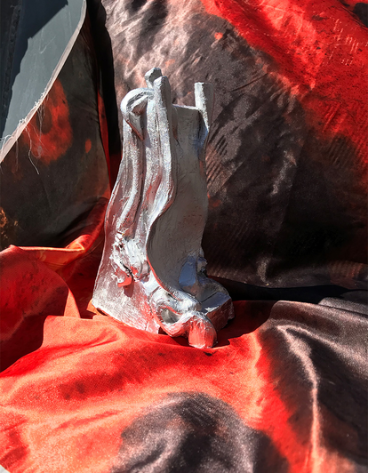 After all those phases and experiments, my research led me to sculpting on organic shape out of clay embodying this process, and spray painting it silver, creating a reflective surface.