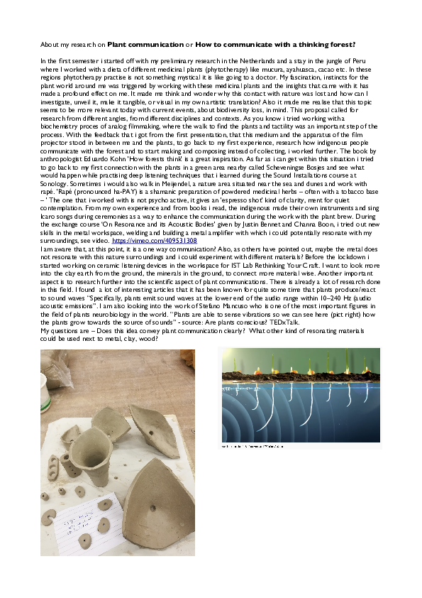 ‘Investigating through making’ is at the core of the course 'Potentiality of Sound in Matter', that is produced and guided by Channa Boon and Elena Khurtova, for all departments of the Royal Academy in The Hague.