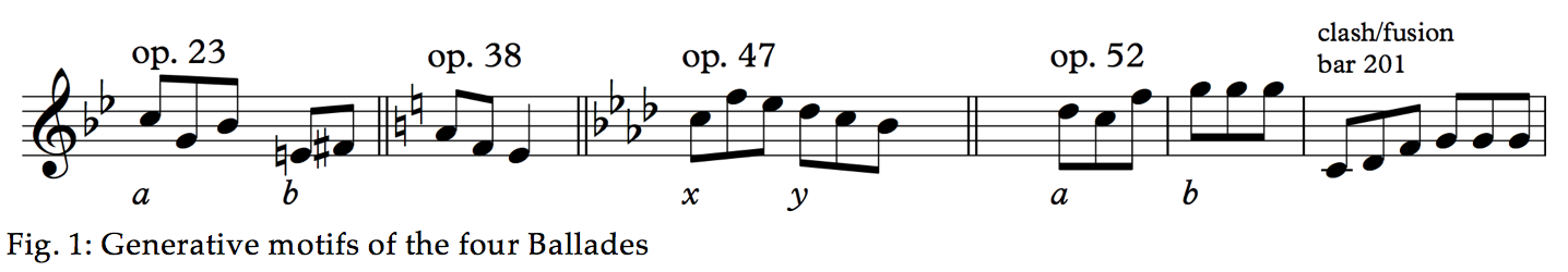 All the Ballades have in common that they lean strongly upon a single motif in which melodic and harmonic material originates. In Fig. 1, I show what I find to be these motifs.