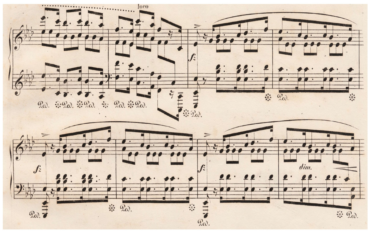 To elaborate on the testimonies, there were apparently several distinctly conservative traits, preferences and values – alongside the innovative and explorative ones – in Chopin’s pianism. In aiming at constructing the piano and composer genius Chopin, one has been zealous to distinguish him convincingly from inferior contemporaries. We learn to think that Chopin was great – and e.g. Kalkbrenner was typically mediocre. Which of course is true enough. But sometimes we forget that Chopin actually admired Kalkbrenner’s pianism from the beginning, as he accordingly nurtured an everlasting distaste, or at least ambivalence, regarding Liszt’s playing (maybe he wouldn’t have objected to applying Cramer’s verdict la haute gymnastique musicale [42] on his semi-friend). In some ways, Chopin’s aesthetical ideals and passion for taste harken back to the last decades of the 18th century and the first decades of the 19th, and it is relevant to confer and compare his playing style with that of some figures of the past. Clementi’s favourite pupil John Field’s performances in Warsaw made a deep and multifaceted impact on the young Frédéric. Cramer and Moscheles represented no formative influences for Chopin, but he was sufficiently aligned with, or benevolent to, the ideals and pedagogical principles of the old-timer Moscheles («With all my admiration for Beethoven, I cannot forget Mozart, Cramer and Hummel») to contribute to his piano school Méthode des Méthodes with 3 études in 1839. [43]