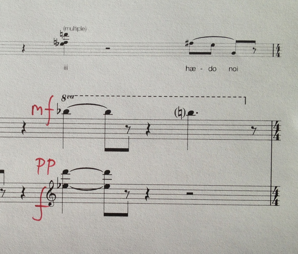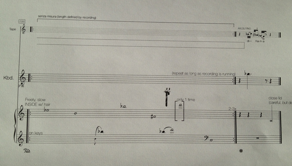 [12] ‘Another issue is to which extent what you hear can be isolated and perceived unaffected by what you see. With a beautiful female pianist plucking the strings, pulling red plastic cups over the keys and slapping the piano with the palms and a hammer it is impossible to omit the visual impressions. The visual impact that takes a lot of attention is hardly the composer's intentions. ‘ Review of my performance of Ausklang, Knut Helbekkmo (Bergens Tidende, 2010) [back]