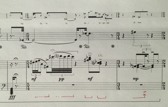 In my interpretation of the solo part, I wanted the children’s voices to merge into the same sound world as the piano timbre when I played on the two instruments at the same time. I did not want the children’s voices to lie ‘on top’ of the total sound, but wanted the two ‘instruments’ to melt together. This is very difficult since the piano sound is of a percussive nature, so I needed to adjust the dynamics of the written part. At some points, I also needed to adjust the pedal markings to make the piano sound more expansive, to try to avoid the piano’s innate percussive quality, by keeping some of the tones in the middle pedal or the sustain pedal and allowing this background sound to ring through.