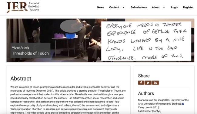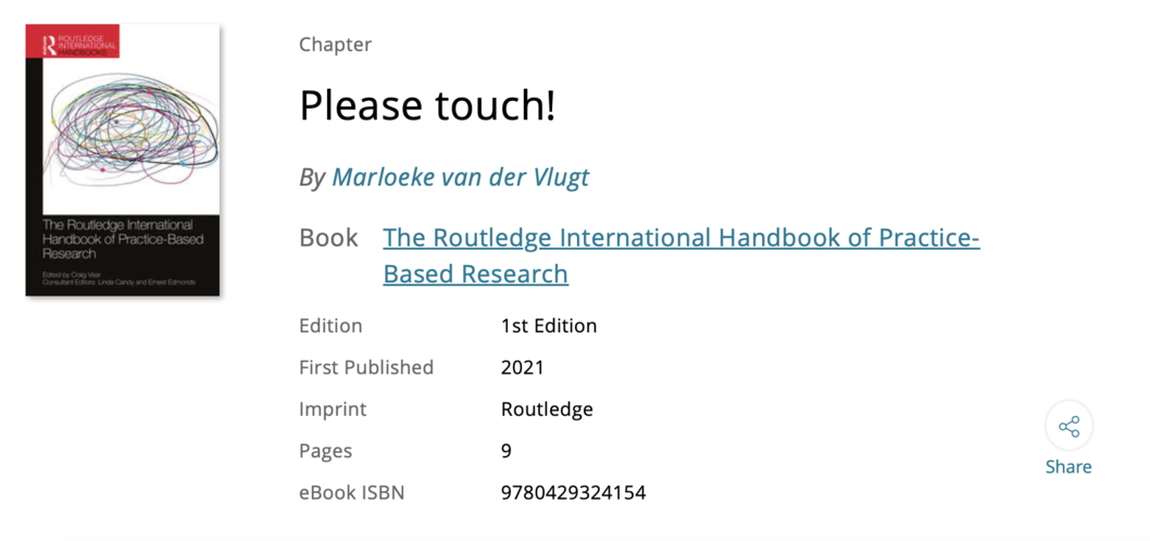 ‘Tacile Composition’ in: I Experience as I Experiment – I Experiment as I Experience. Experience and experimentality in artistic work and research. Toim. / Ed. Denise Ziegler, Published by The Academy of Fine Arts at the university of the Arts Helsinki, pag. 177