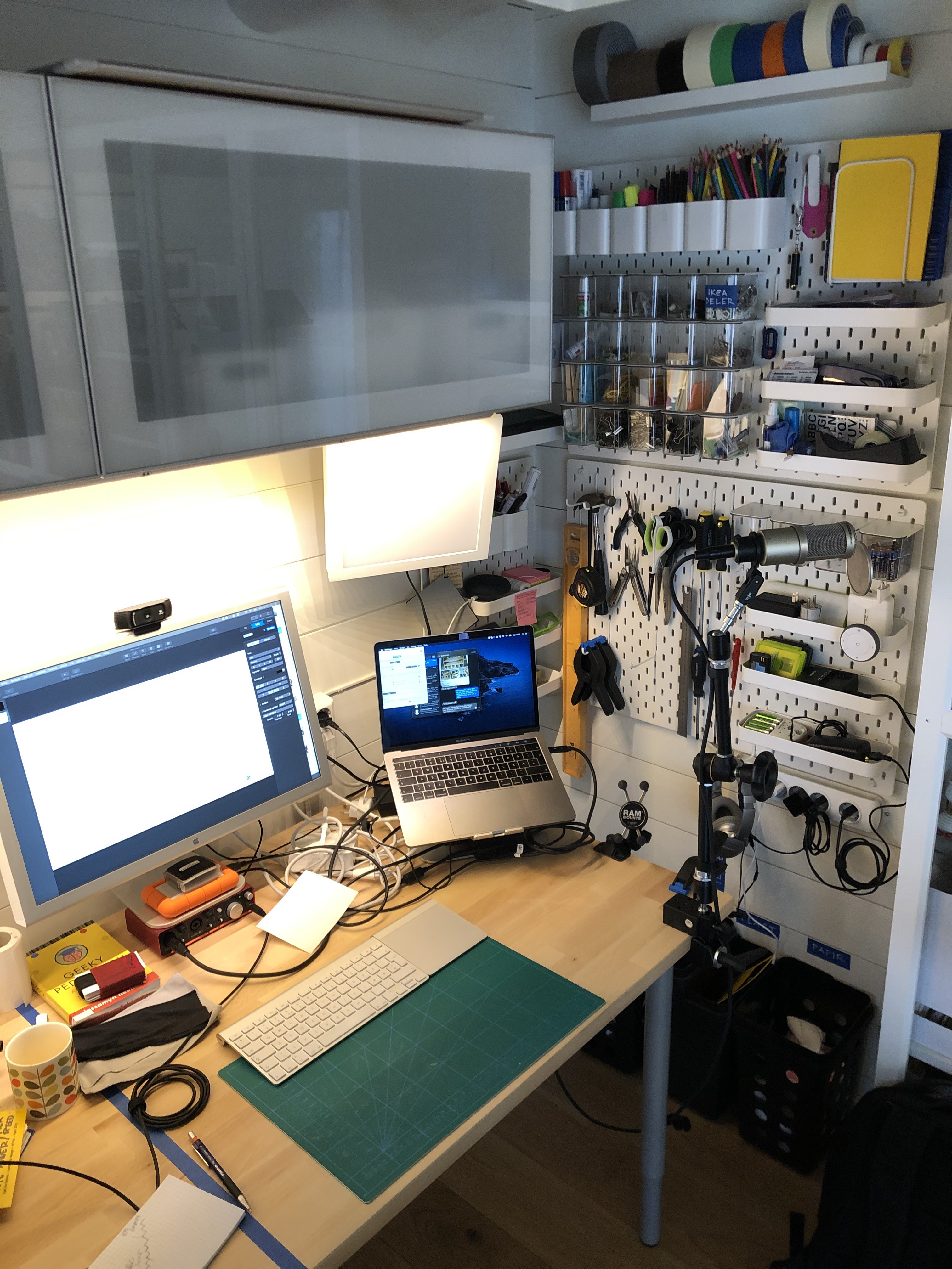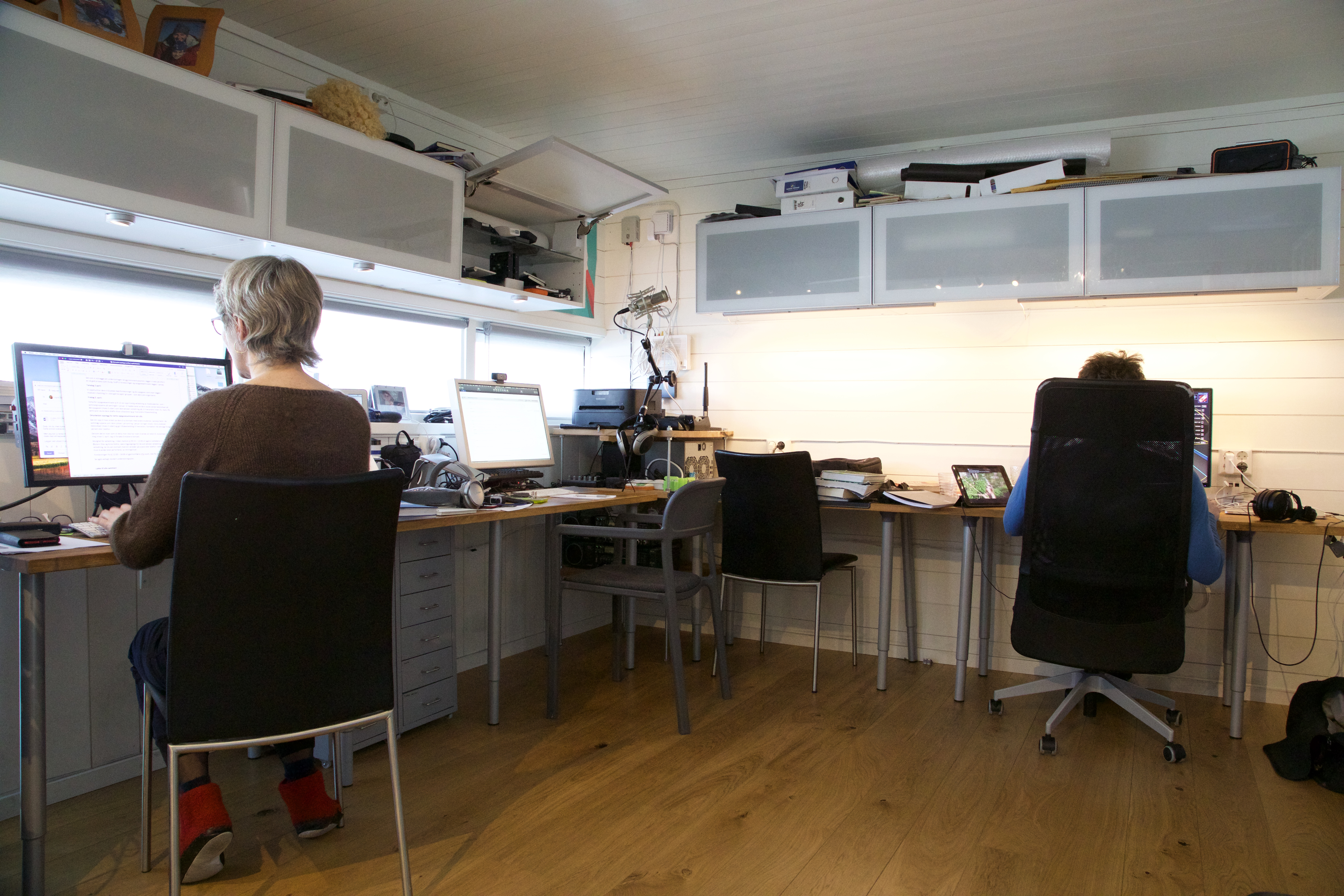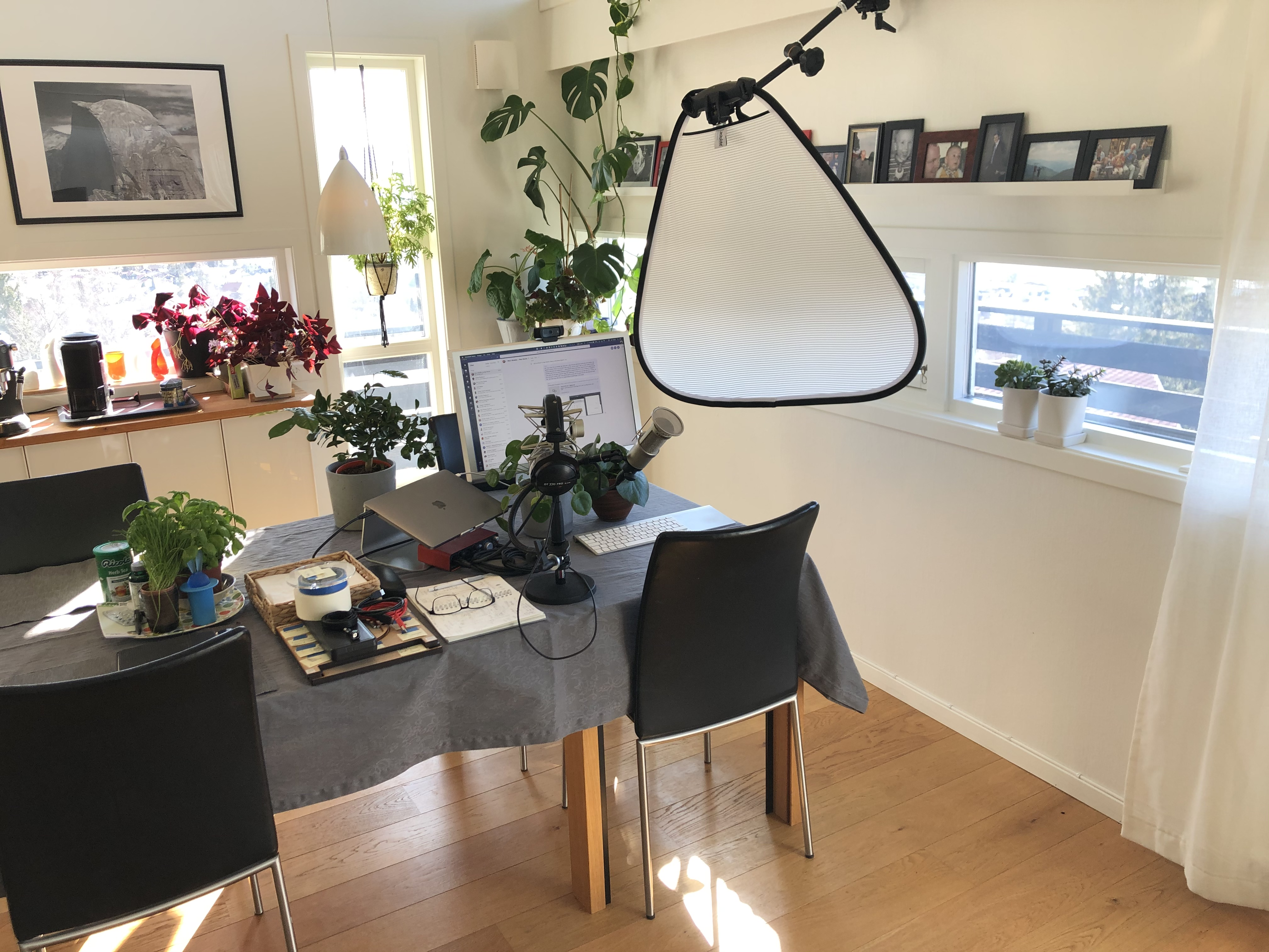 Our youngest son gets the TV room as his office, and continues home schooling there, while me and my wife starts a re-decoration plan for our home office. Cleaning it down, fixing blemishes and gives the room new office tables, more plants, better light and better and more storage. After 3 trips to IKEA, and 3 weeks worth of evenings and weekends, the office re-appears in a better form. That includes microphone stands, a trip to the office to pick up a chair, a monitor and some computer paraphernalia. In total, NOK10K is invested in a vastly better home office situation.
