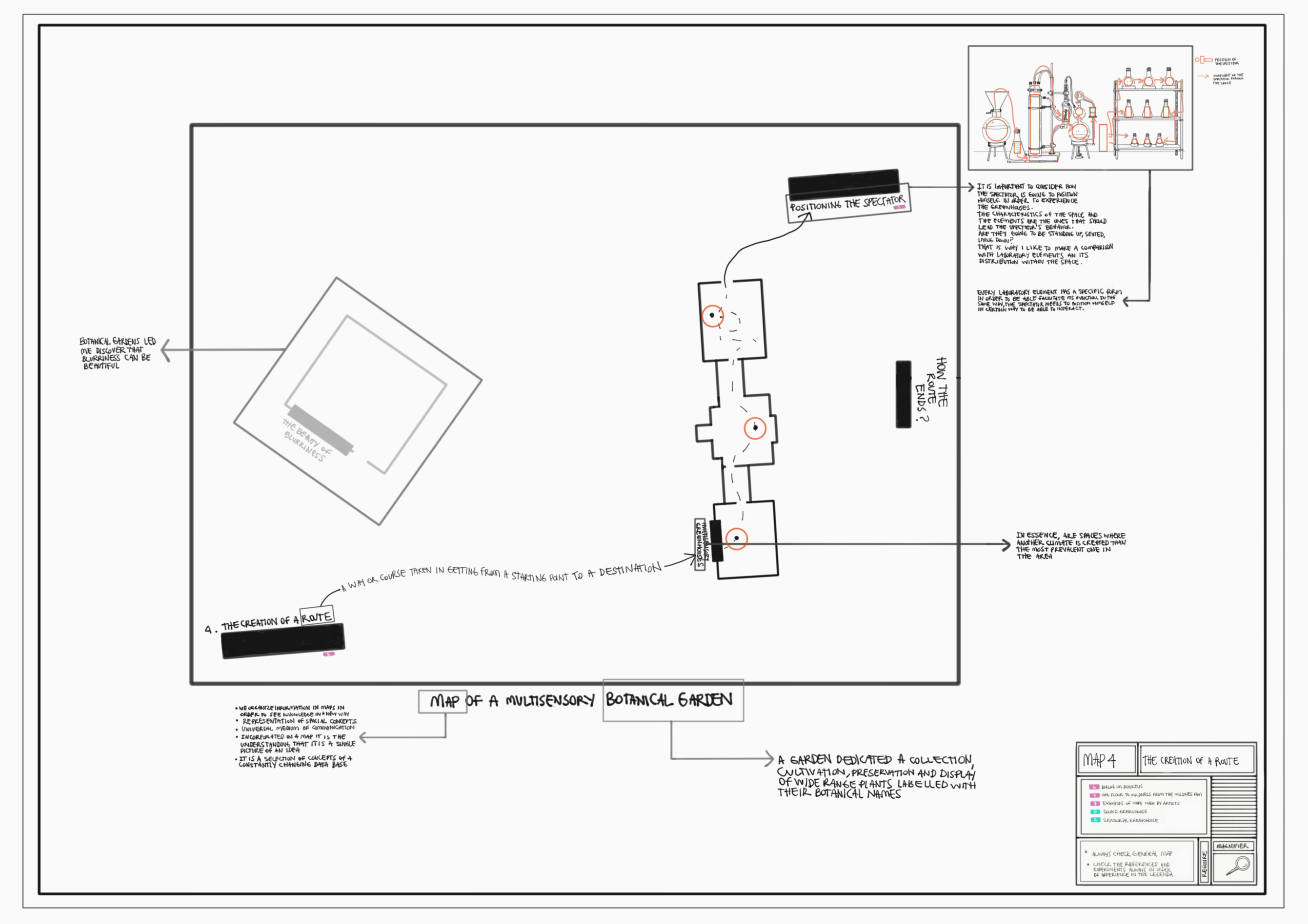 In MAP4, you will discover the reason for the analysis of botanical gardens and their connection to the laboratories. Furthermore, I will show how these spaces have been my references in materializing the route of the senses. Moreover, I will explain the importance of positioning the spectator in creating an interaction within a sensorial space.