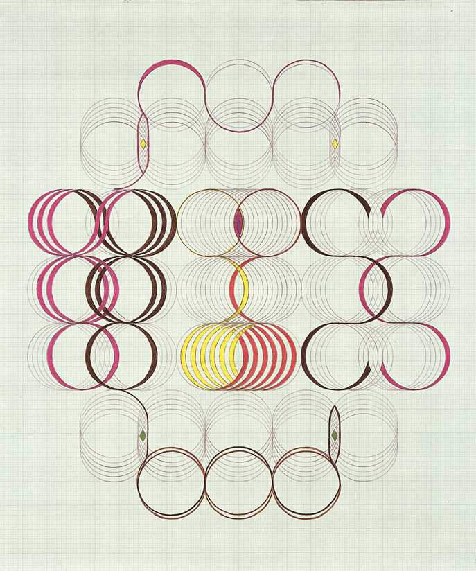 As for Emma, most of her work she created using a pendulum, as a means to gain insight. She was not trained as a painter, and her work was done with pencil on small grid paper.