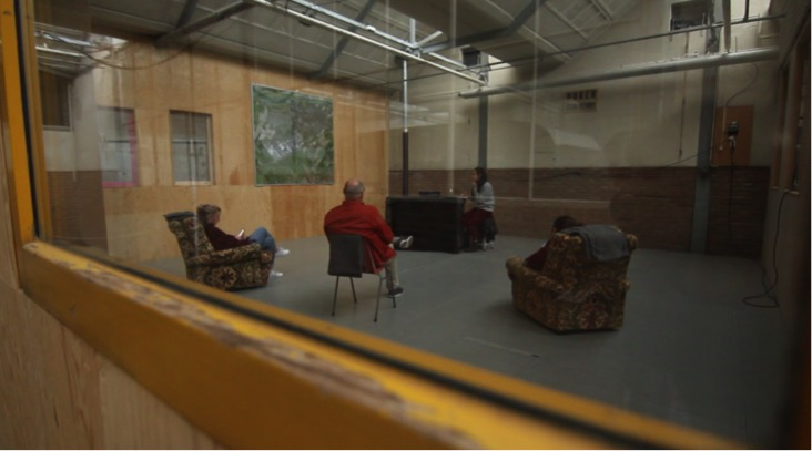 The space was arranged for optimum listening – comfortable chairs spaced with good distance, and the idea being that only a few people should enter at a time for better listening. However, sometimes this did not work out, and I felt that the idea of taking time to settle into the work and listen to it was a foreign notion. It seemed the spectator needed something heavily from me, even though my sole purpose was to deliver the tuning of the stations in time. I found this unexpected insight to be an important one – questioning what kind of information does the spectator need? What happens if there is a human body physically there with the work – do their eyes always out-run their ears? I was pleased that many noticed the map of the aerial view of the trainline hanging in the space. It was an important visual element, reminding us that we have travelled here, to share together this snippet of time.