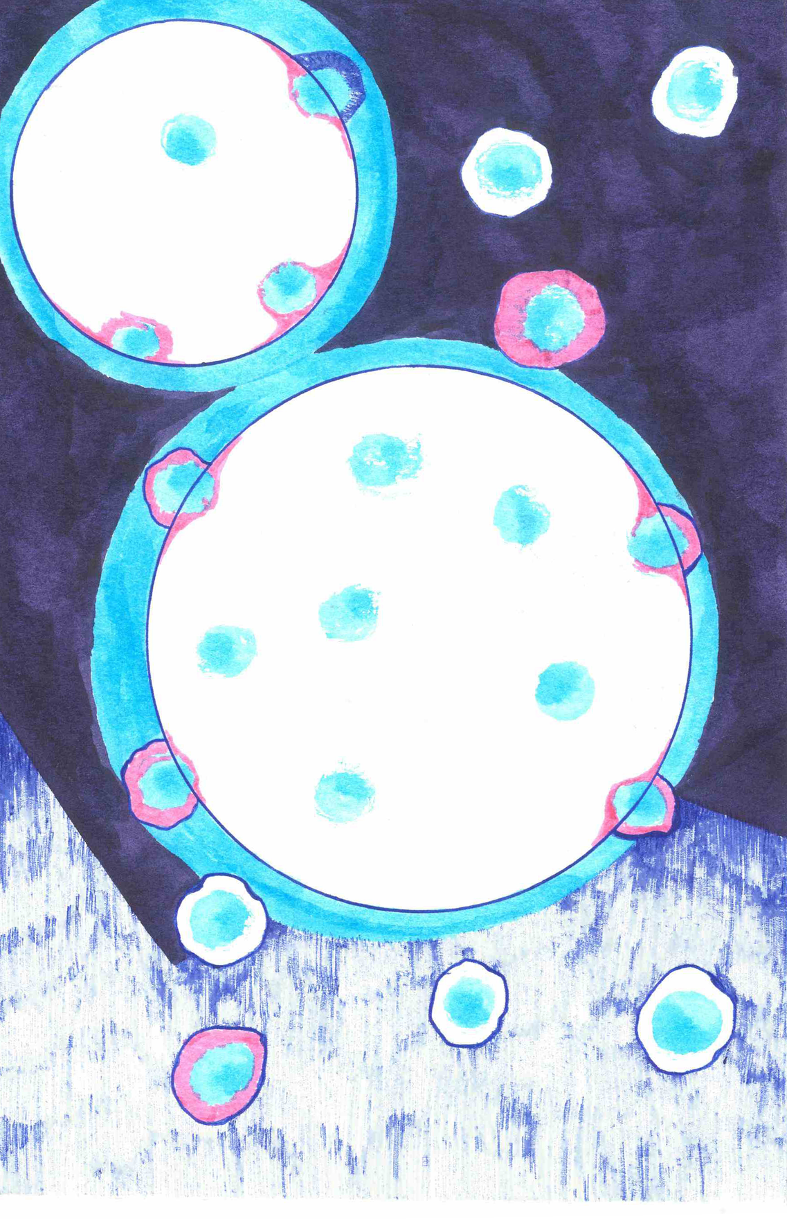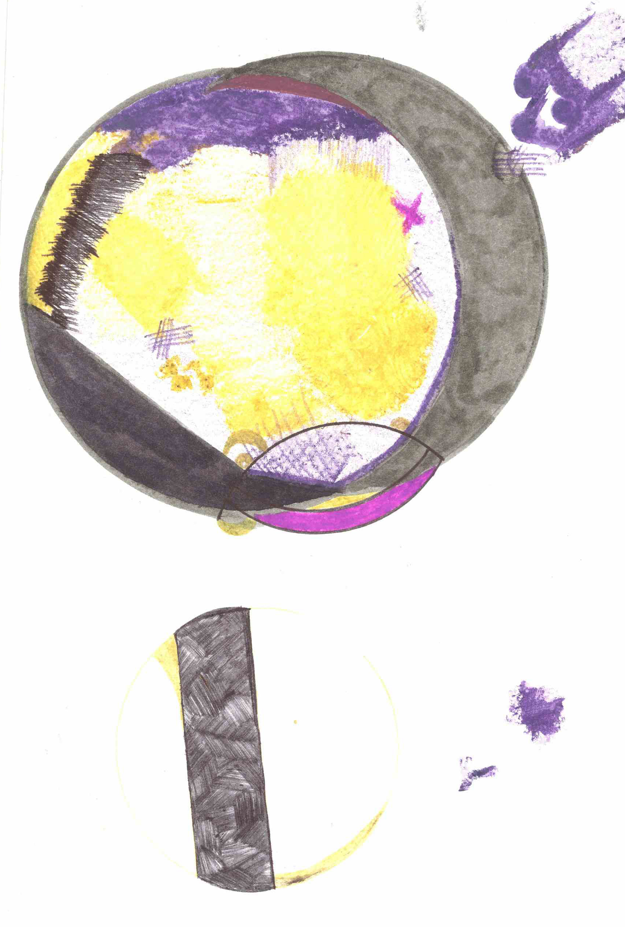 Below,the boundary of the space within which the experience is notated, is represented by the black line around the notations. The colours and shapes are the elements within the experience, influencing, overlapping and relating with eachother. The idea is that these are captured moments in time.