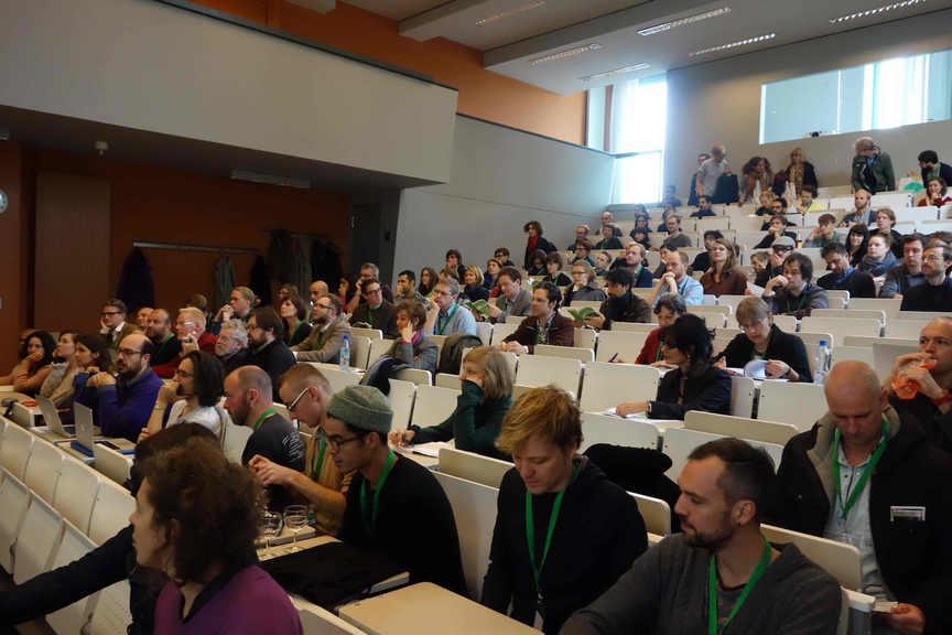 Host and organizer of the conference was the Sound Studies Lab, founded by Holger Schulze in 2011 at the Humboldt-University in Berlin and funded by the German Research Foundation, the DFG. The initial research questions of the Sound Studies Lab were how human beings experience mediated, non-verbal auditory signs, so-called functional sounds, and how a design theory of auditory signs can be described in terms of a cultural theory. Researchers Carla Müller-Schulzke, Max Schneider, and Julia Krause worked on various aspects of these questions: critical analysis of sound theories from the history of semiotics; field research at the offices of sound designers who invent functional sounds; and analysis of field research in specific listening environments, e.g. in public transport, in public places, in co-working spaces, in the living room.
