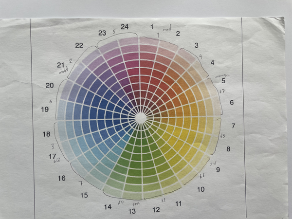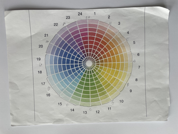 In the concrete category, I have made a system for all colors in the artworks in the Red Studio translated to intervals using the color circle and the circle of fifths.