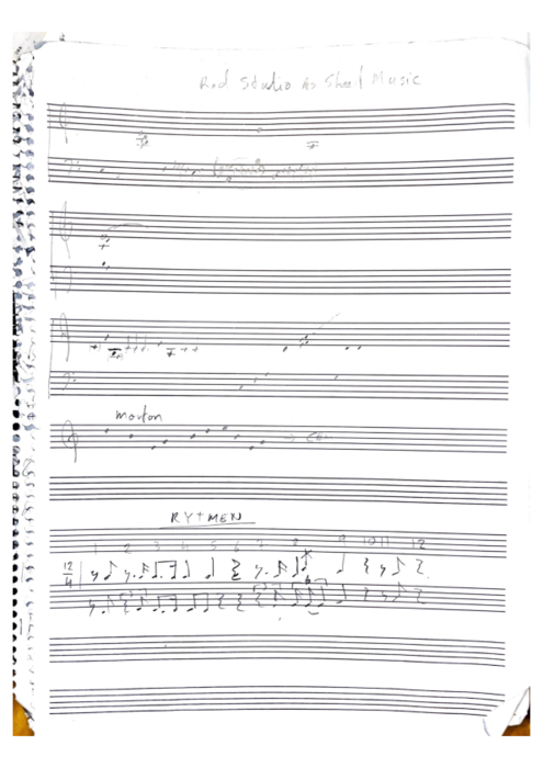 I have written music from different perspectives on the Red Studio, based on my artistic research project transformative reflections, where I work on translating and getting inspiration from visual art to music. I work with 4 main categories of composing, that can flow into each other. The methods are intuitive, element analytical, concrete and idea analytical.