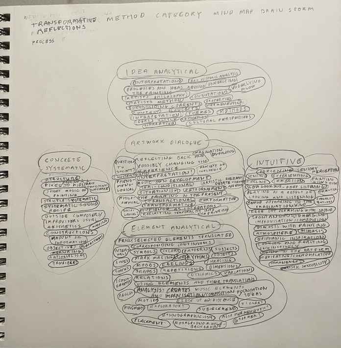This is an example of transferring ideas from the process and not necessarily a translation of the painting's narrative or content but an idea that creates something new in the musical domain.