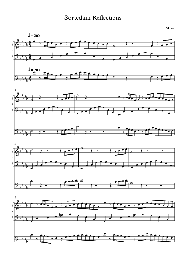 Based on category 2 - element analytical and category 4 - idea analytical. The quarternote based bassline represents the reflection of the moon in the painting that looks a bit like an instrument, for example a bass. The three curves becomes 3 x 3 beats and a 9/4 meter and the shape of the line semi-follows the lines of the moon reflection.