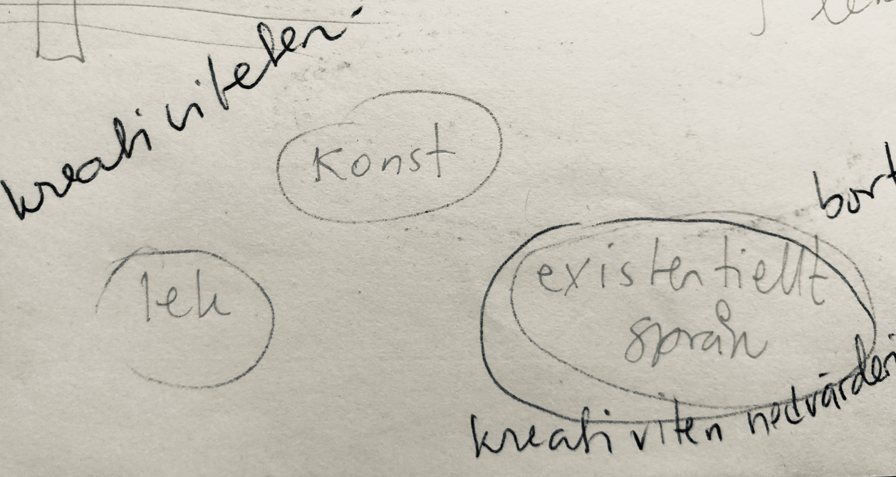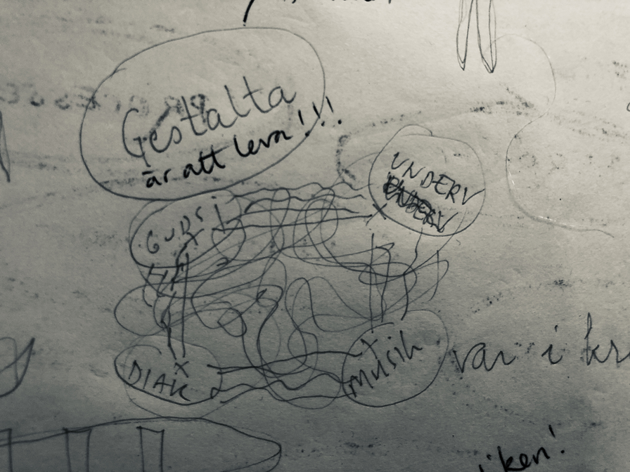 Ord har under våren 2020 'tagit gestalt' genom existentiella samtal mellan anställda och ideella i Carl-Johans pastorat. Dessa ord och tankar formar grunden till en serie konstnärligt gestaltande (existentiella) laboratorier, som i sin tur får resultera i en performance installation.