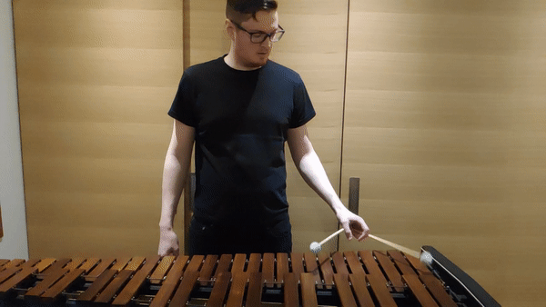 A typical motion when playing with two mallets in one hand is the supination and pronation of the wrist. The difficulty of this movement increases when the arm needs to reach down the instrument. There can also be differences in how much the supination and pronation muscles have to work based on the girp used to hold the mallets.
